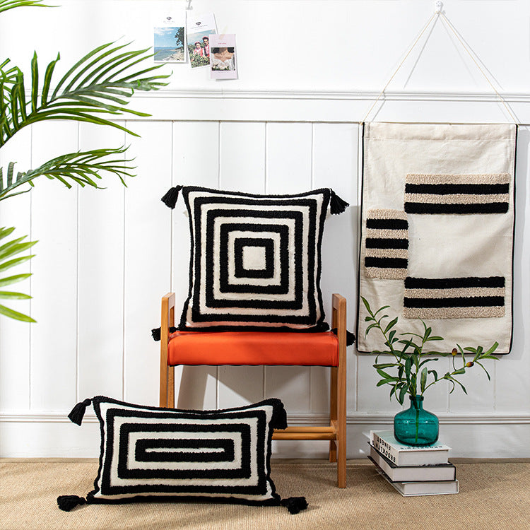 The perfect way to add a touch of understated elegance to your decor! Featuring a unique tufted design and a sleek black-and-white color scheme. this pillowcase is a must-have for anyone looking to create a minimalist. yet stylish living space.