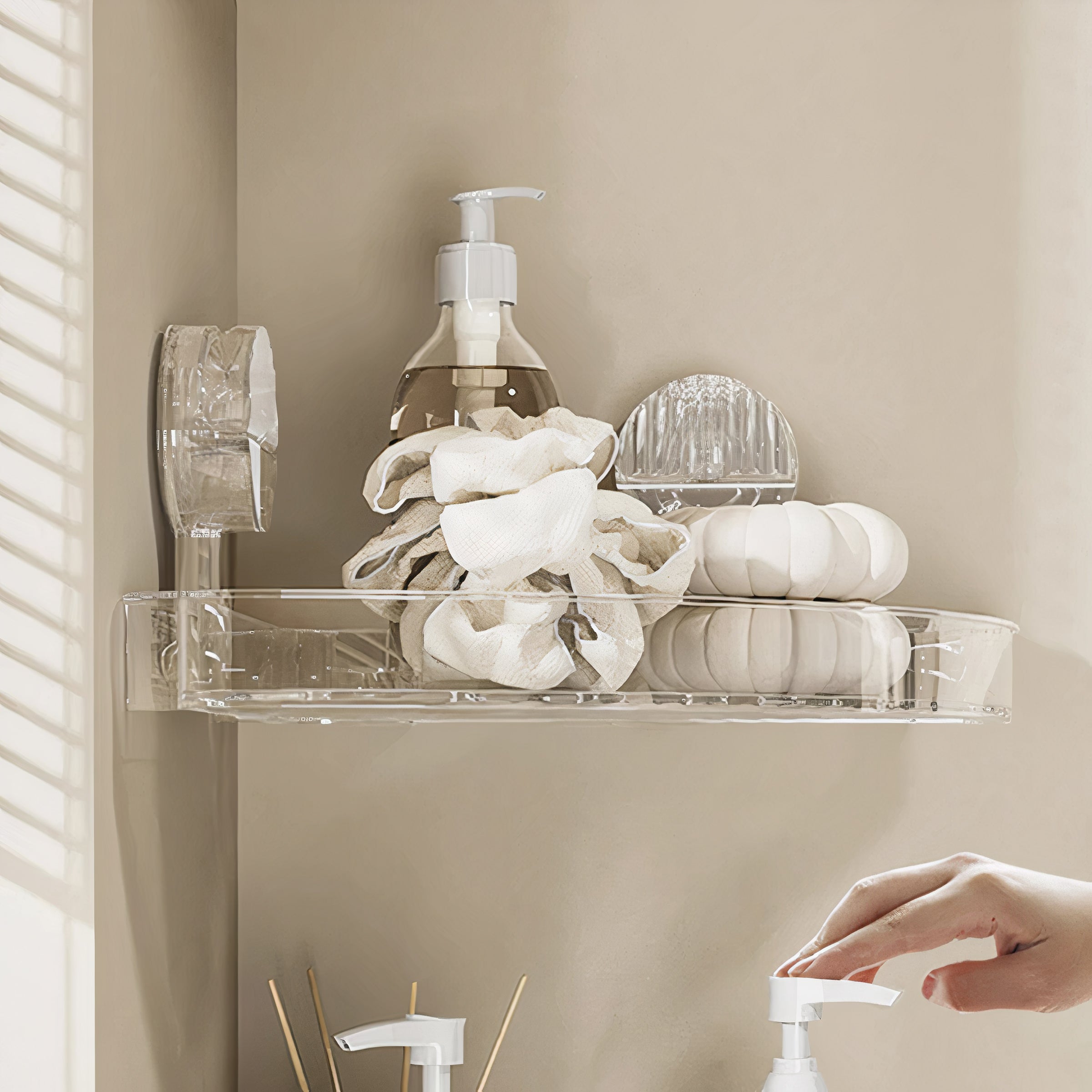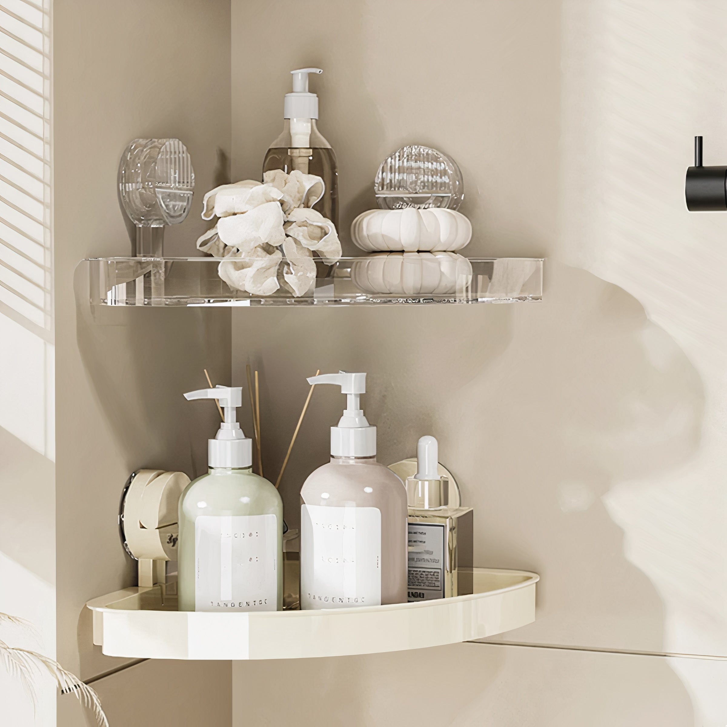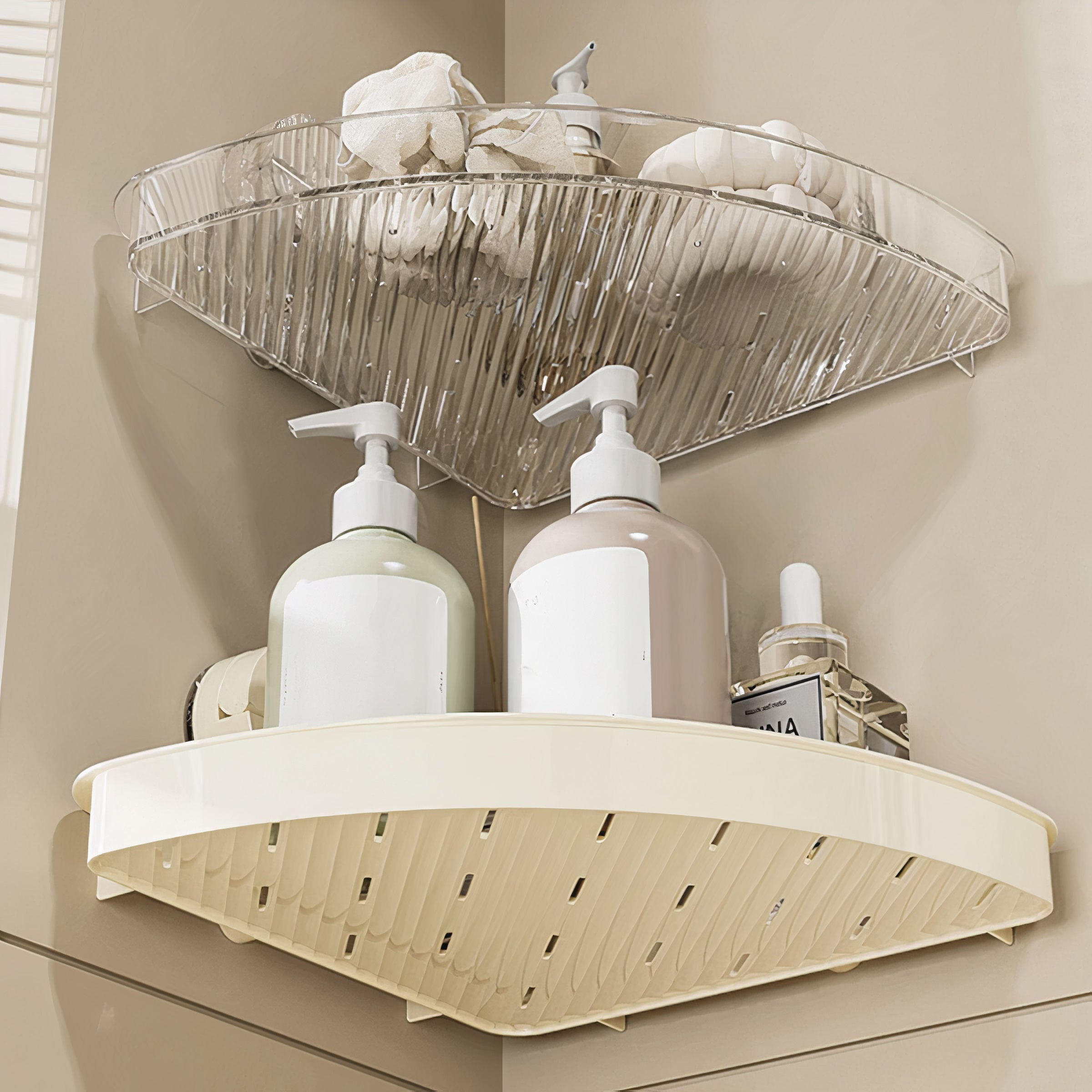 Introducing the Corner Shelf – a groundbreaking bathroom storage innovation crafted for both convenience and style. This elegant triangular storage unit employs robust suction cups. eliminating the necessity for drilling or puncturing holes. With its sturdy build and contemporary aesthetics. the Corner Shelf is an essential addition to any bathroom. providing a tidy and visually pleasing answer to your storage requirements.